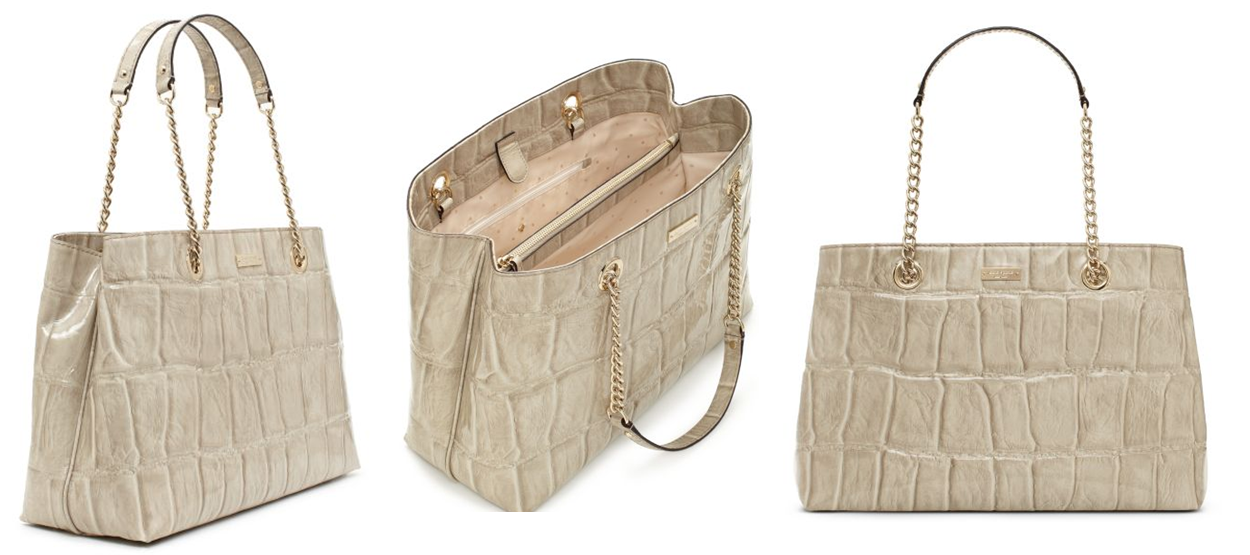 The ultra large, crocodile embossed patent leather… yummy… and the color is called Goose – how cute is that?! Dear Kate, you have outdone yourself again. Love, Becky