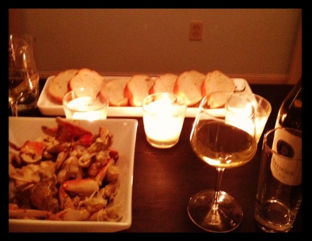 My “last supper” so-to-say, was a crab feast with Kris on New Years Day. It was amazing – we devoured two whole crabs, a stick and a half of butter, a whole loaf of fluffy french bread from the bakery (still hot I might add), and a whole bottle of wine. Needless to say, it was a fabulous last meal to kick off the new diet, and the first night we ate dinner in our newly re-styled dining room! With the lights down, and the candles going, it was tre-romantic!