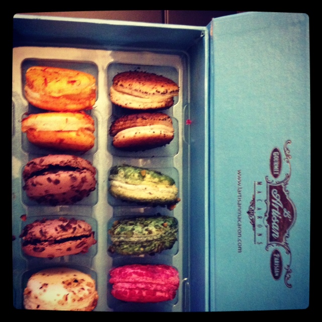 A fun treat arrived to my office this morning! Gorgeous French Macaroons from L’Artisan Macaroon. They are very hard to find, and these one’s in particular actually came from one of my favorite bakeries in the world – Bouchon, a Thomas Keller bakery in Yountville California.
