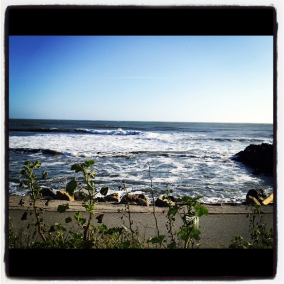 The ocean was really churned up from the storms, and the waves were HUGE! We hiked out to Mavericks Surf in Half Moon Bay, to watch the surfers brave the monster waves. The waves were close to 60 feet, and they had guys on jet skis towing the surfers into the waves. So crazy! Kris hiked to the top of the hill to watch, but I was feeling lazy so I settled myself on some huge flat rocks and soaked up the sun.