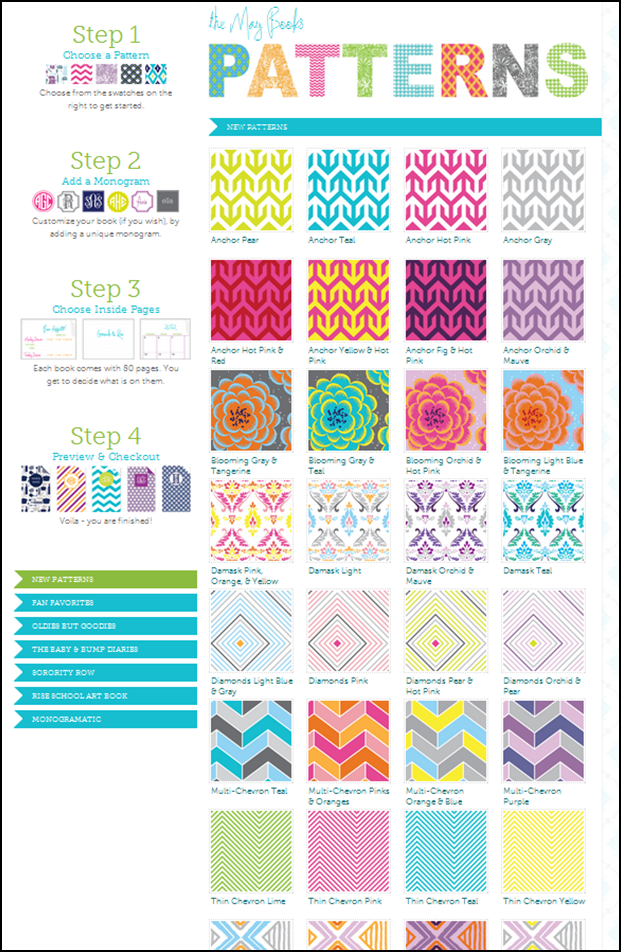 The site is so easy to navigate – just pick your pattern (they have really cute chevron prints, along with florals, ikat prints, greek key prints, and polka dots!)