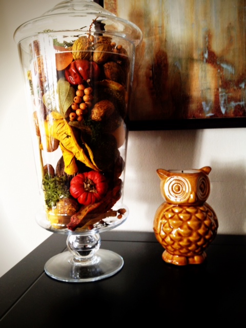 I also love the new pumpkin spice potpuri I got (don’t you love the autumnal colors) and my little owl candle! He is the cutest little thing… I couldn’t resist!