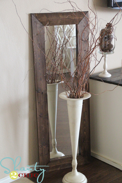 I stumbled across this DIY on Pinterest, and after clicking through, discovered the most adorable blog, Shanty 2 Chic – a blog all about putting in some extra time to turn inexpensive pieces into something amazing. I love that for a little elbow grease, you can save big bucks, and walk away with something fabulous. My personal opinion?? This mirror looks WAY more expensive than it is!