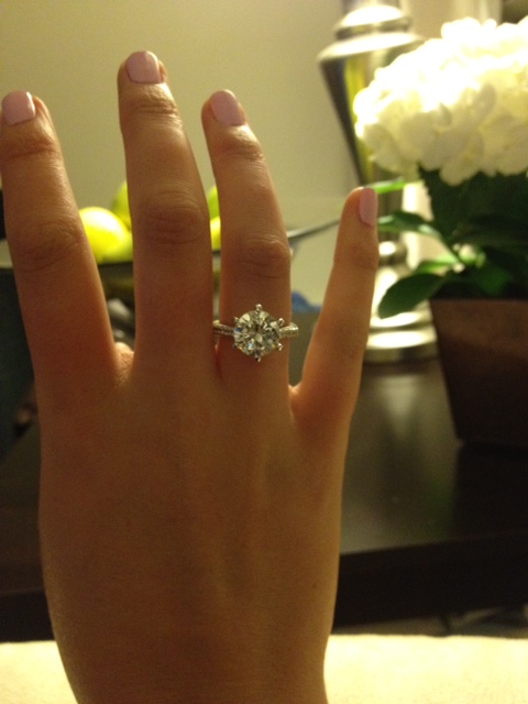 One of my girlfriends got engaged recently, and her ring is phenomenal. The band is way too large for my left hand, but it fits like a glove on my right (yes, I totally tried it on… I’m shameless).
