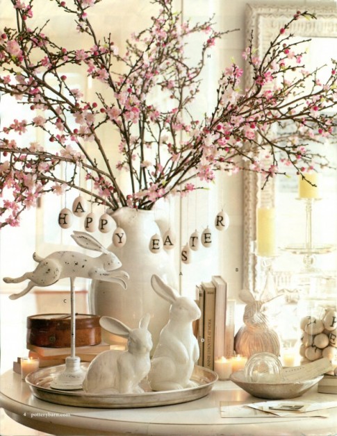 And, here is the cutest little Easter tablescape in the history of the world. Those little ceramic bunnies hopping about… the happy Easter egg ornaments hanging from the branches?? I love LOVE LOOVEEE it all!