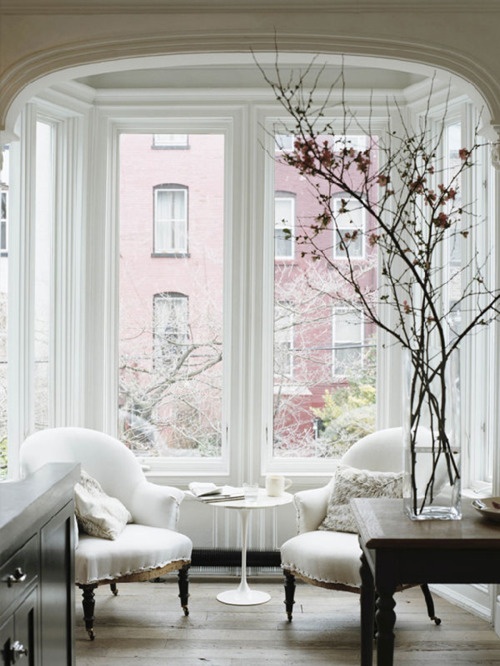 This photo looks like it was taking in San Francisco (although I have no proof of that). My dream home – lots of white, lots of light, and that beautiful crown molding The branches get to take center stage with the simple decor.