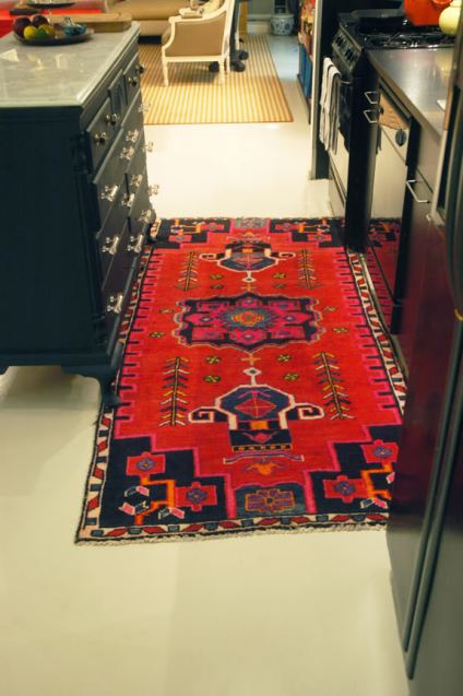 She had this great little rug: from in her New York kitchen. See what I mean? With a less traditional pattern, that is more graphic and “chunky” it really makes this space come alive!