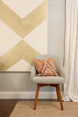 I saw this vignette, and almost died.  That chair (from West Elm)… love it.  The mid-century dresser… so pretty.  And that painting??  The inverted arrows???  A blown up, modern take on my favorite chevron print?????  I’m all over it!
