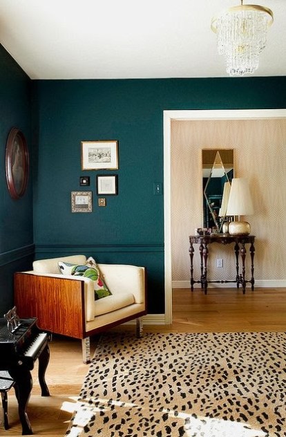 I'm also a huge fan of Erin Gates, and LOVE the animal print stairway. I'm dying to see more pics of it – the other teal room is cool as well. I don't know if I could stomach animal print 24/7 in such large doses, but they pull it off well. Good luck if you try it!