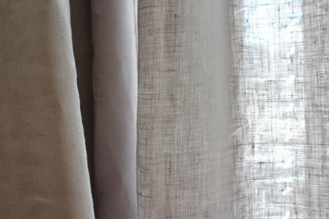 Another close up of the curtains hanging up – they are wrinkled since I photographed this after just taking them out of the package, but I’ve steamed them since, and they are wrinkly in the way that linen should be… not like they’d been sitting in a hot car for days all crumpled up.
