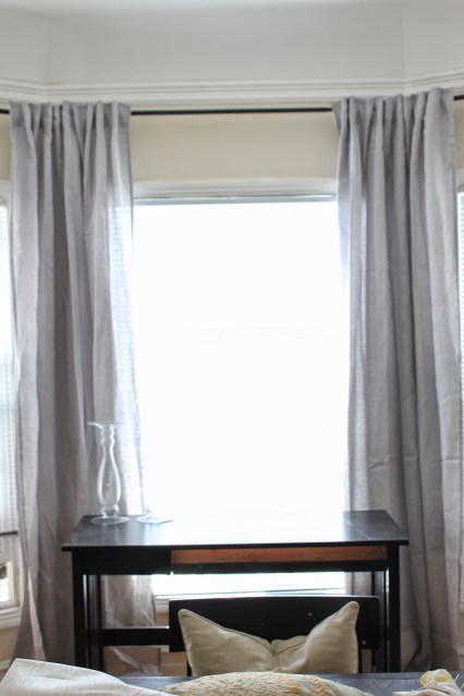 I’ll just tell you – Ikea.  Yup.  Ikea is amazing.  Two 98″ linen curtain panels for $50.  Can you believe it?!