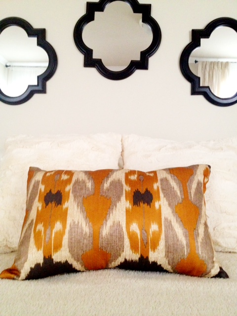 I swapped out the blue and white chevron for a few furry white pillows, and added on an autumnal lumbar pillow that used to have a home in our living room. I love how white, and soft, and pretty it all looks – it really makes the lumbar pillow pop.