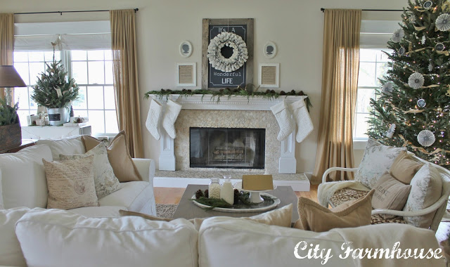 I recently stumbled upon a new blog and it’s love. I discovered City Farmhouse on Pinterest, and after clicking over to the photo’s source, fell down the rabbit hole. An hour later, I’d completely stalked her entire house, and trust me when I tell you… it’s AMAZING. What I love the most is that she’s really into up-cycling furniture and decor she already has… I mean how pretty is her living room all done up for Christmas??