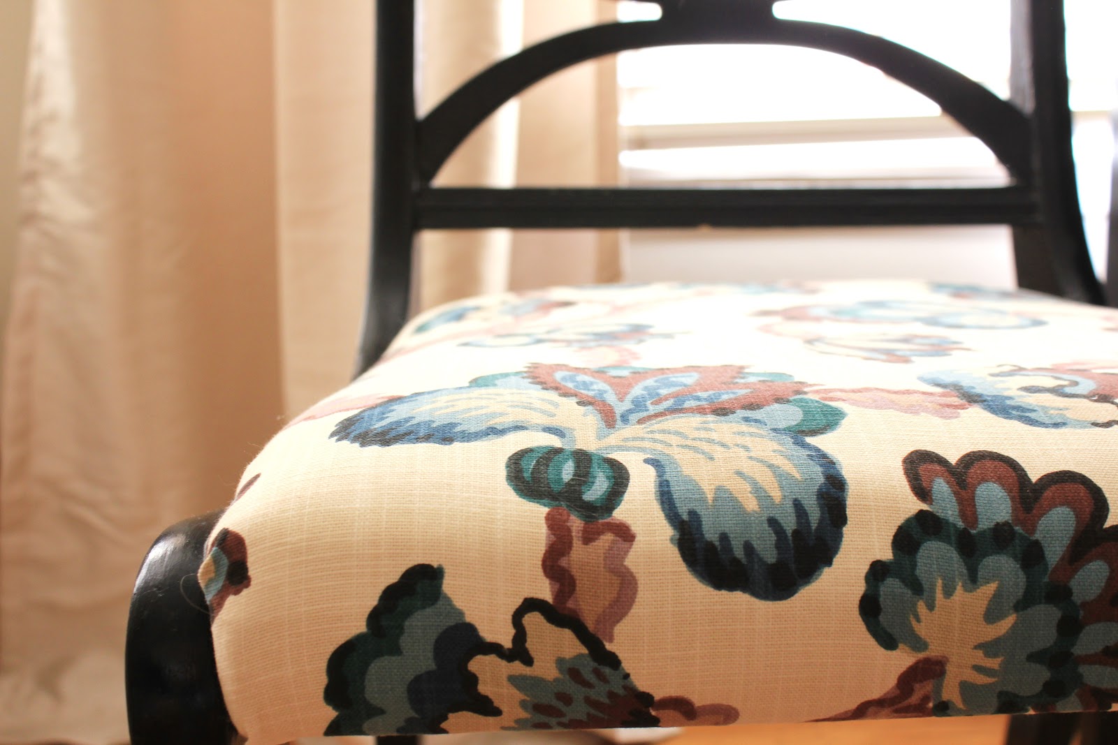 I am loving the colors, the pattern, and the fact that in just over an hour, the chairs looked a million times better!