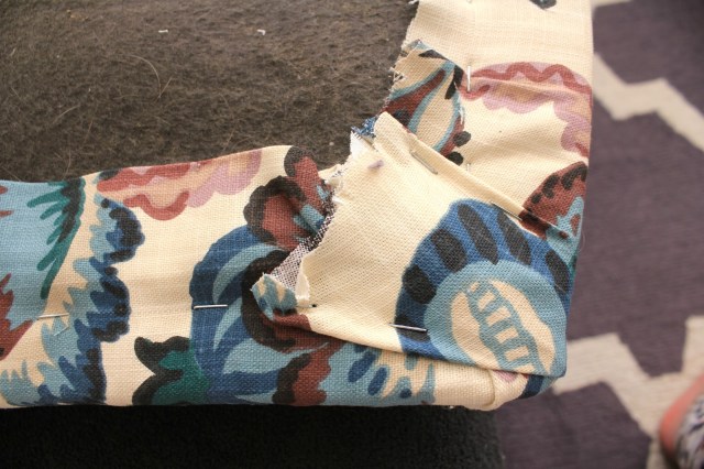 Staple fresh layer of batting over cushions if needed – the actual cushions were in good shape, so I skipped this step.