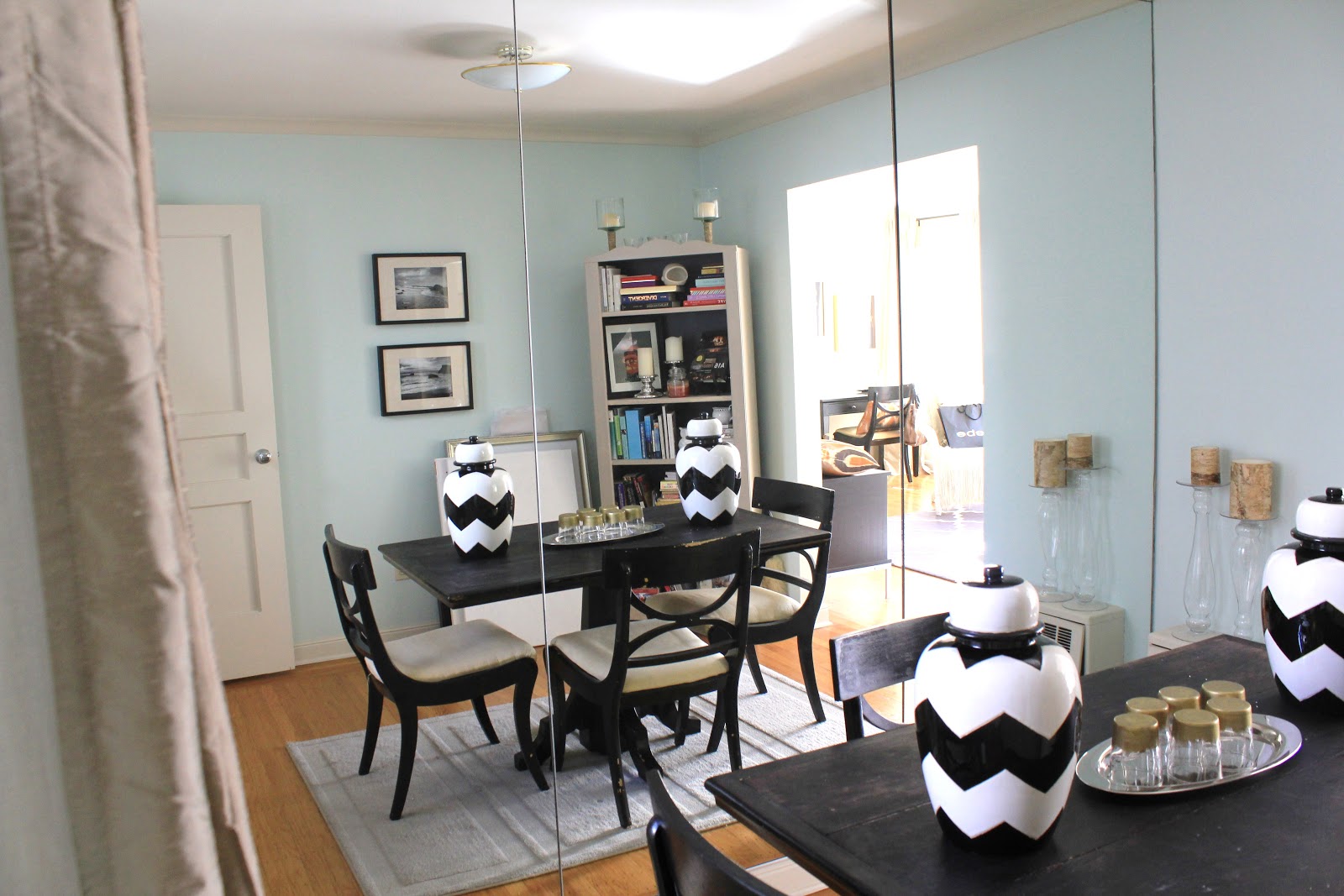 And another angle – this room is pretty small… maybe 11’x10′, so it’s hard to photograph from a distance, but the mirrored wall helps a little… also, ignore the mess in the corner – those frames are still waiting to be hung!
