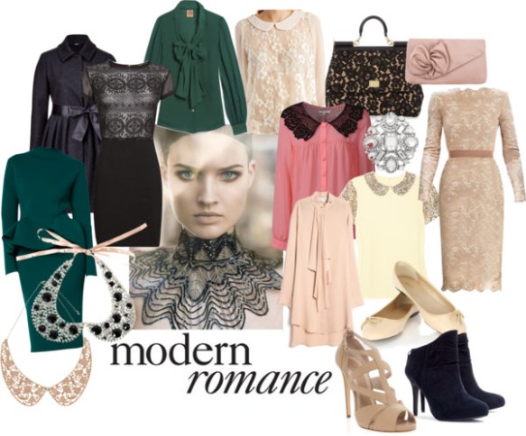This look is all about modest necklines, embellished details, and feminine touches. Lace, ruffles, and bows are everywhere, but in non-girlish, sophisticated silhouettes of course. The peter pan collar was made popular on little girls’ party dresses (god knows I had plenty growing up) but when they are touched up with rhinestone details or intricate black embroidery, they are nothing but “adult”. Go monochromatic with navy suede booties and a navy trench dress, or nude strappy sandals with a nude lace dress for a fancy dinner out. With so many grown-up ways to wear bows, lace, and sweet collars again, who can resist?!