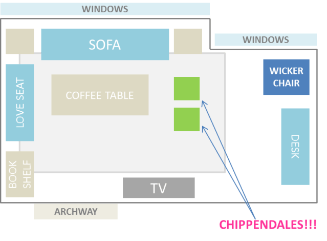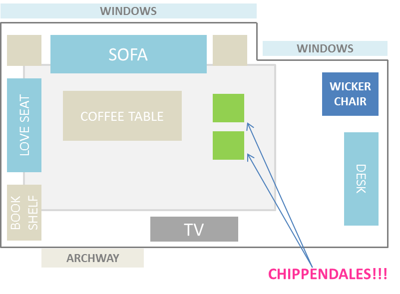 So once the bedroom furniture project is finished… then what? Great question… once it’s finished and back in the bedroom, I get to have fun finishing the living room. Much of the big pieces are in place, but its the little touches, that need some work. One thing that has really started to bug me is the rug. We have a lovely rug in there right now, but its just too small for the scale of the room. New rug is a must, and I am loving the more contemporary lattice patterns (shocker, right?!) I spent some time putting together an inspiration board for the living room, and while there are a few things that can (and probably will) change, I think this is pretty close to what the finished product will be: