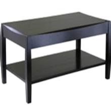 The coffee and side tables came as a set, and are made of dark black brown wood – very similar to the table in the photograph. Nothing earth shattering going on there, but the set is sturdy, functional, and there is enough modernity to appease my better half.