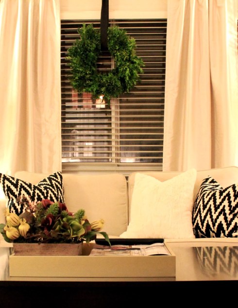 The knit creme colored throw was a find at Ikea (of all places), and it’s so cozy, and adds a bit of texture to the sofa. It also lives on the chaise lounge, and protects the sofa from dirty feet.