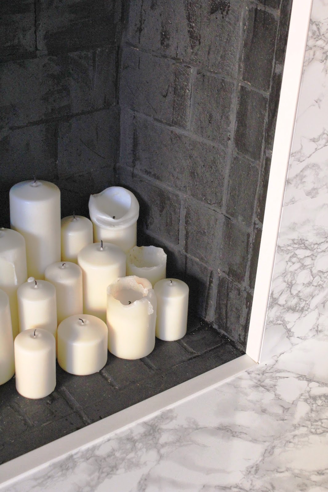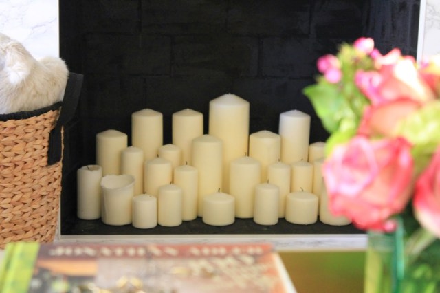 So candles are a good alternative – they are super cozy at night when they’re all lit, and in the day, they offer a pretty architectural element. As we burn them, I love the wax drips that come down the sides.