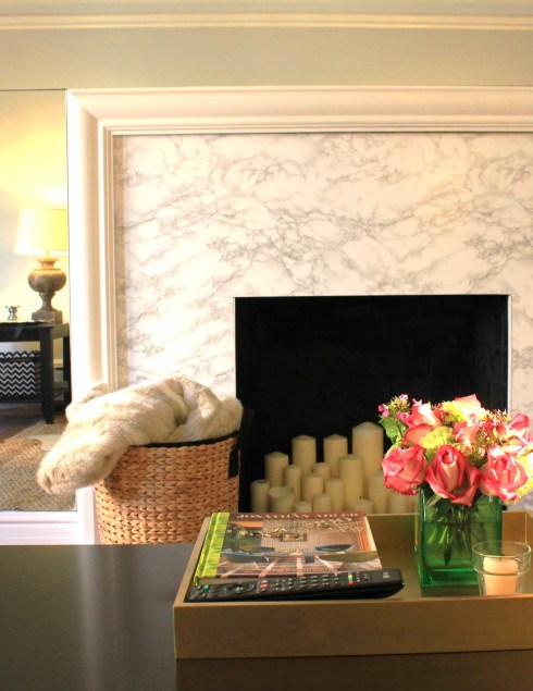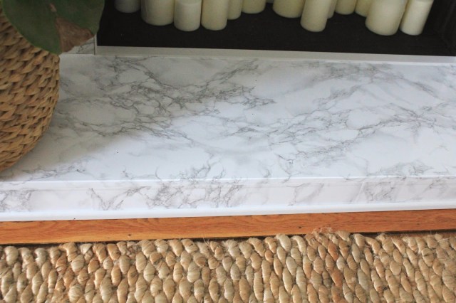 The contact paper is holding up really well, and everyone who comes over always comments how much they love it. No one knows it’s not marble, and I’m certainly not going to be the one to tell them 🙂 Read about the whole process here.