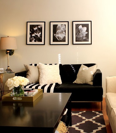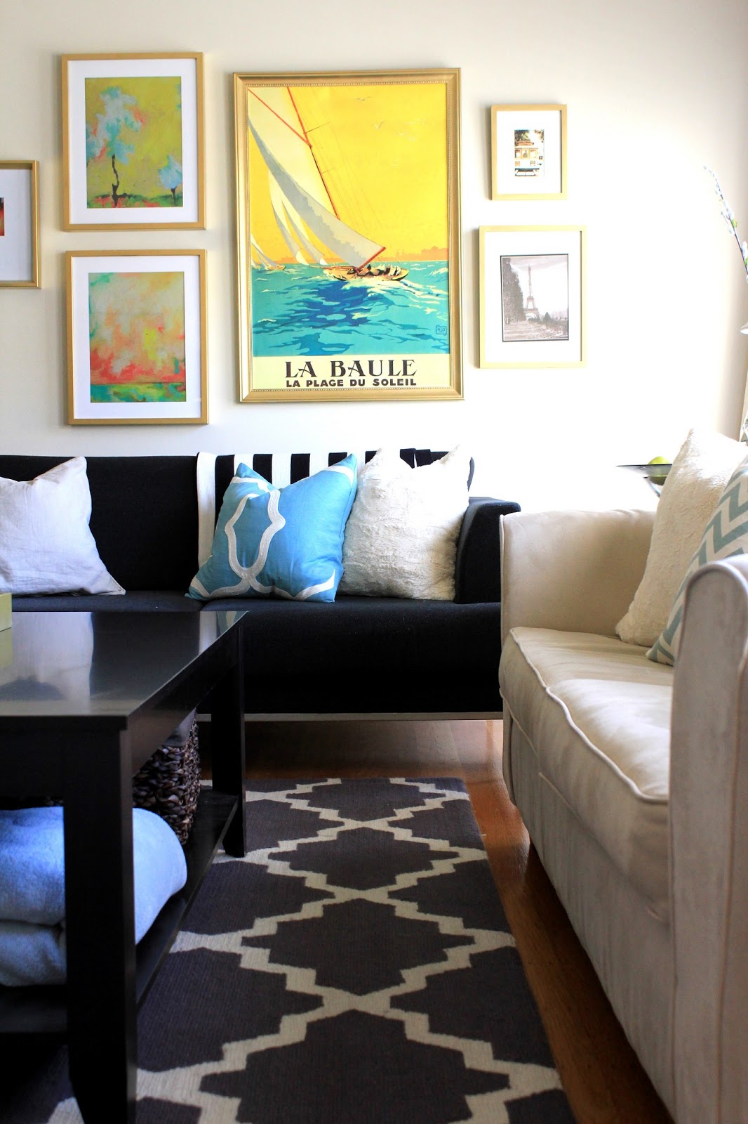 When we first moved in, I absolutely despised Kris’ modern, black couch… but in the last year or so, I’ve either a) gotten used to it, b) piled enough pillows and throw blankets on it to distract the eye, c) balanced out it’s darkness with other dark colors in the living room, or d) all of the above… I kind of don’t hate it anymore.