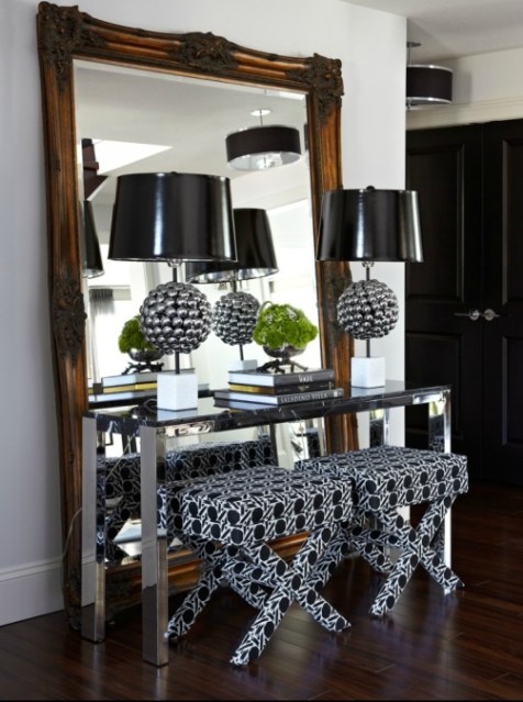 The mirror will eventually be swapped out for something round or more ornate (like I’d posted about here) but since propping up the gold picture frame on the right, I kind of hate the mirror less… either way it will have to do for now.