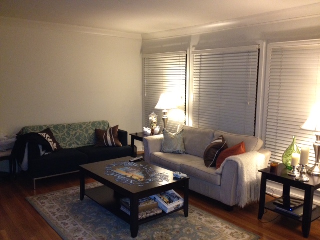 So here we are, sitting on Kris’ couch and looking across to the other side of the room… ignore the painting propped on the ground by the front door. That came out of the dining room, and needs to find a new home somewhere else…