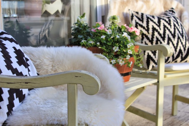 Ok I have done pretty much NOTHING to the deck, but wanted to share a few “progress” photos.  The deck is still peeling and in terrible condition, along with the chairs, but ignore all that.  I’m stoked because I bought some plants and they have already made a huge difference! I’m doing my best to not kill them – no promises though.