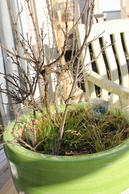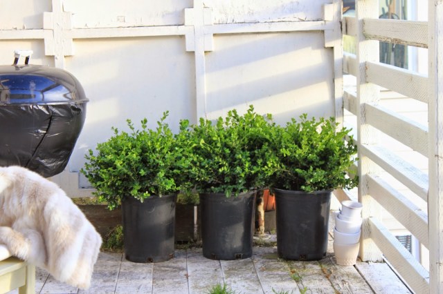 I snagged a few boxwood’s on sale at Orchard Supply, and they’re lined up against the wall right now.
