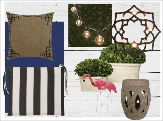 I’m ready to get this deck whipped into shape!   Other updates on the deck… I just ordered navy and off-white striped cushions from Ballard that are on their way, along with a cedar planter for the boxwoods.  Also on my wishlist is a pretty ceramic garden stool – I’m looking for something blue and white, but don’t want to break the bank.