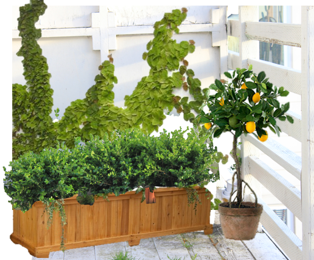 Maybe also a smallish lemon tree in the corner?  I mocked it up (kind of) just to give you an idea of how I see it playing out…