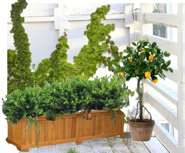 I’d like to stagger some plants, so that something taller – a vine climber like jasmine or creeping fig – can make its way up the wall behind the bushes.  Then there will be the boxwoods, that I’d like to see elevated about a foot higher than they are currently.  And then in front of them, perhaps some flowers that spill over the front of the planter.