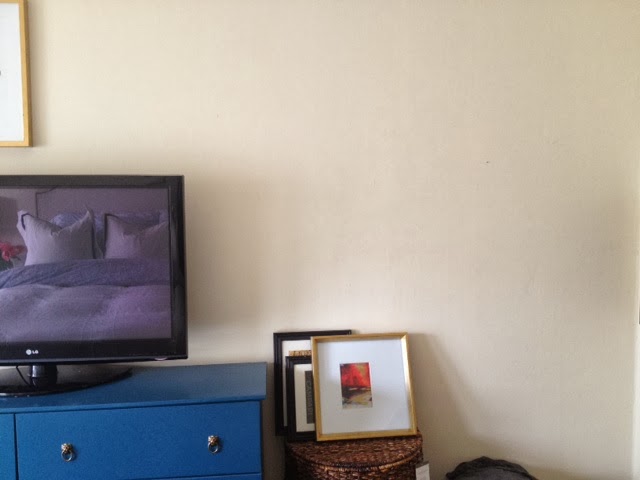 So our bedroom looked really classy for a week or so with this piece of cardboard behind the bed: