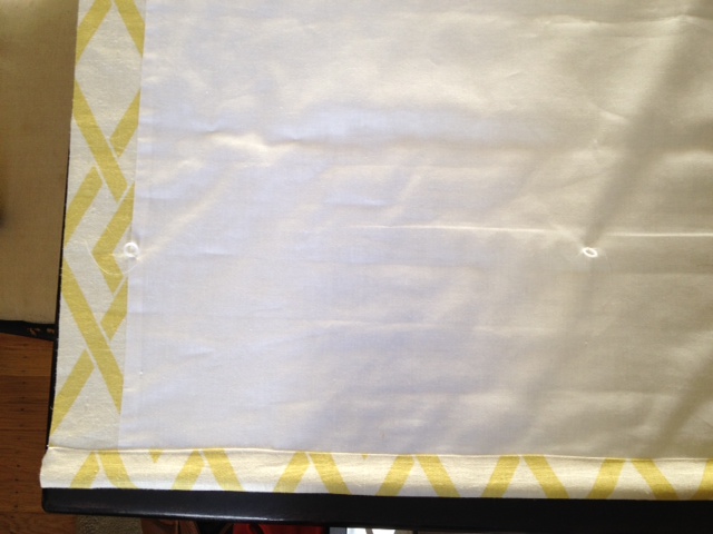 A note I left out above was that at the bottom of the shade, I inserted a wooden dowel cut down to the width of the window, and sewed it in. This rod inside the bottom of the shade acts as a weight so that when the shade is pulled up, it hangs properly. You can kind of see the rod in the above picture. Some people put these dowels up the entire length where each fold will be, but I didn’t find it was necessary. My shade pulls up just fine – perhaps my fabric is heavy enough (and I ironed the folds in, so it has the memory).