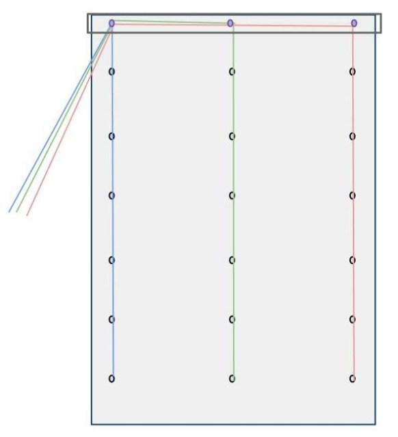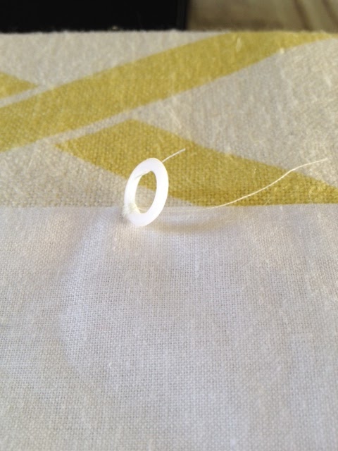 Anyways, getting back to the point… sew three vertical rows of these rings onto the shade. One on each side, and one in the middle.