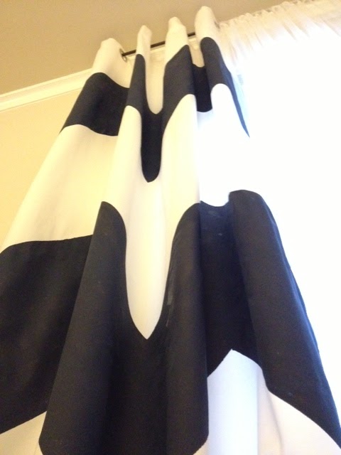And a final glory shot of the curtain, hanging in the hallway – it’s so pretty, although in these pictures, I am completely realizing that I forgot to wrap the side of the wood mount. I painted it white, but I’m not loving that unfinished edge. I’ll have to go back in with a little hot glue gun, and swatch of fabric to finish off the ends!