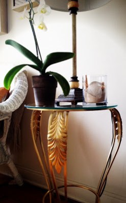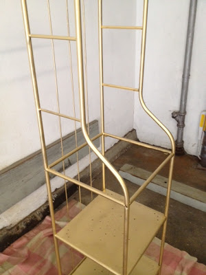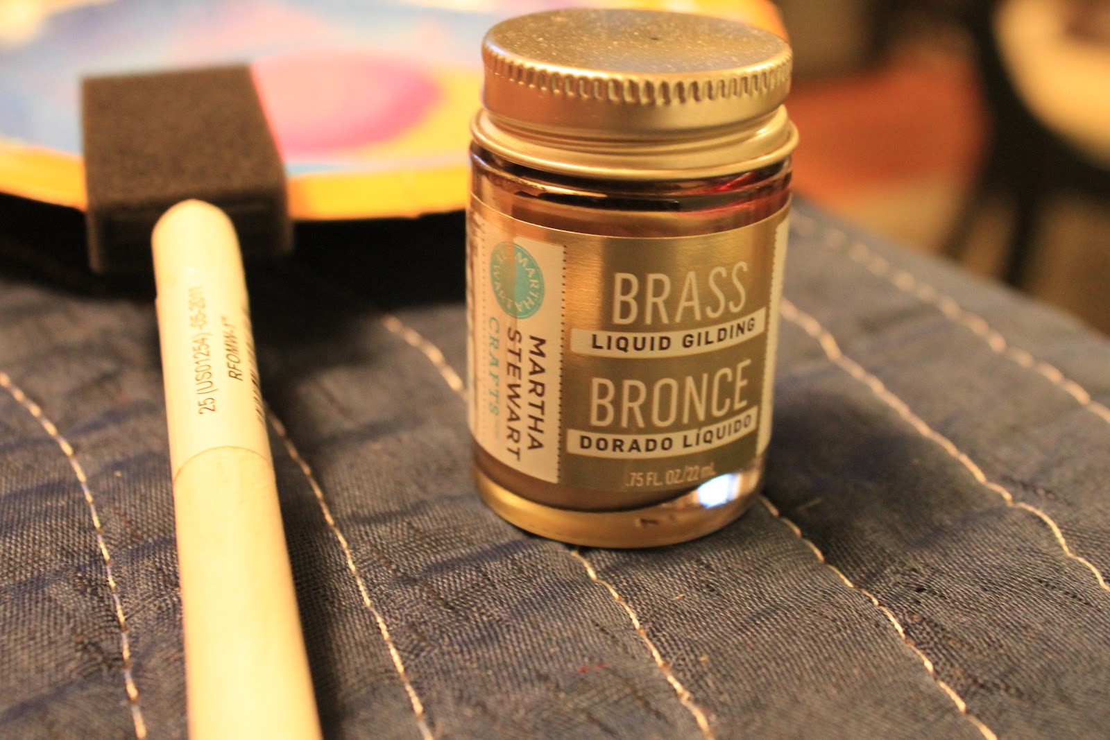 I liked the aged gold look of the frame in my Etsy inspiration, so I thought, “I’ll gold leaf it!” I wasn’t born with the patience for gold leafing, so I got got gold leaf paint (same thing, right) – Martha Stewart calls it liquid gilding paint… potato potahto.