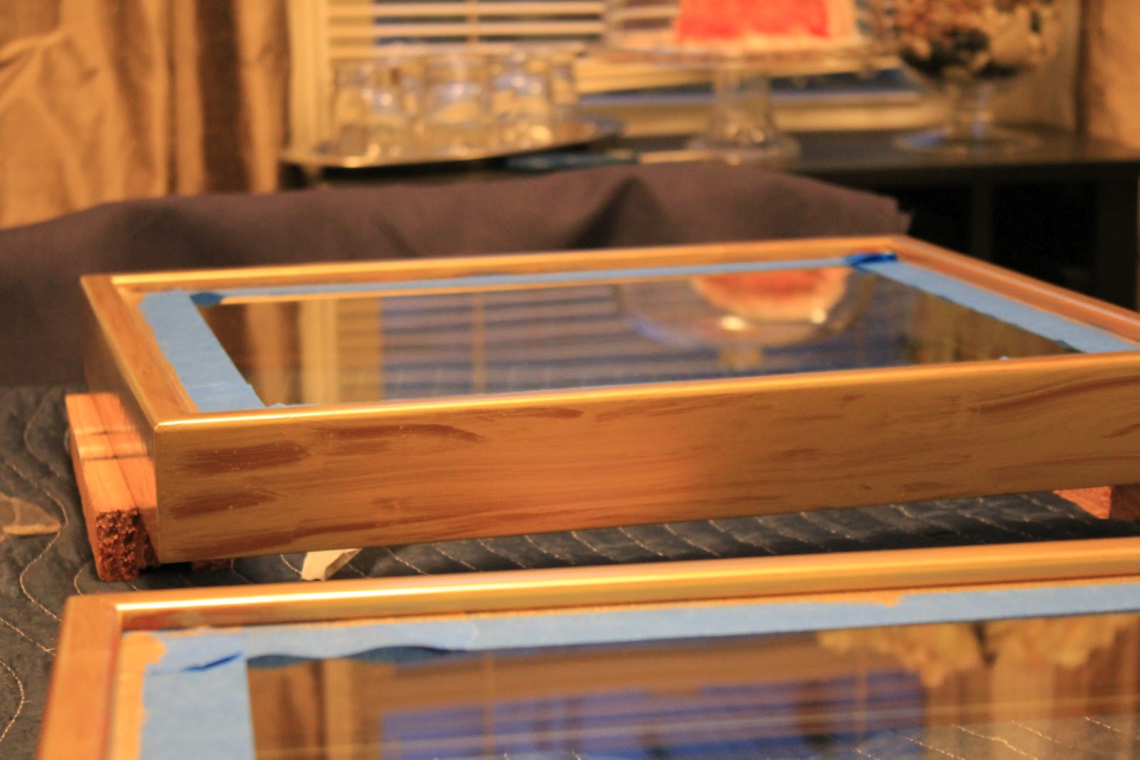 A little painters tape around the edges, and I was ready to rock and roll. The trick to taping it off well is wedging the tape almost underneath the edges between the glass and the frame – this way the paint won’t bleed onto the glass and you won’t need a razor to scrape it off later.