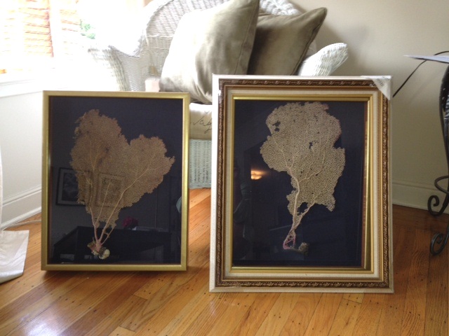 Anyway, our little home is coming together, and I’m so excited for my honey to come home and see the new sea fans, framed, and hanging in our living room!