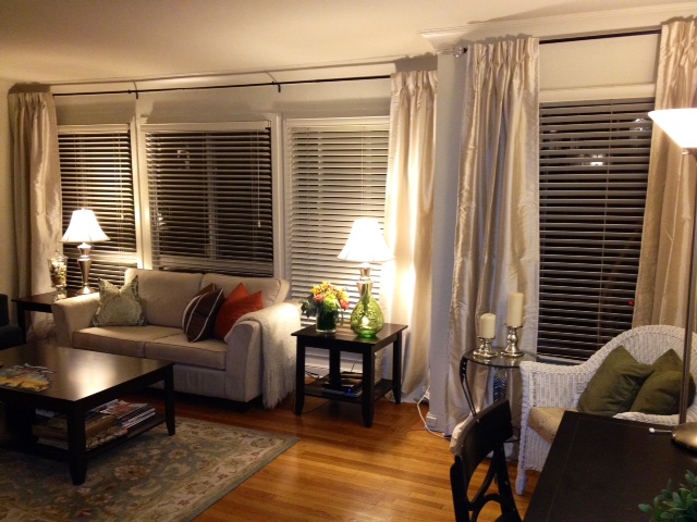 For a twenty-something, who works in advertising, and makes a modest salary… this is an incredible way to finish a room. Yeah, yeah, yeah… I really need a new camera other than my iPhone, so these pictures aren’t great, but it paints the picture. You can see how bare and empty the living room felt sans curtains, and how alive it feels with them.