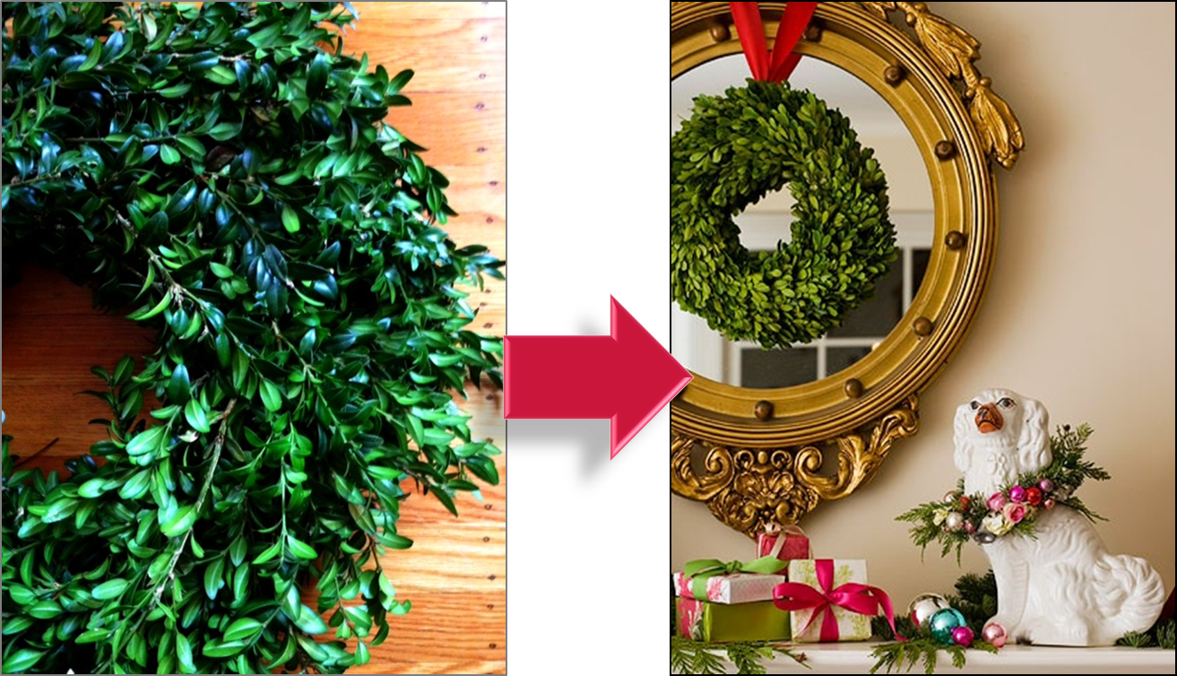 I LOVE boxwood wreaths. Possibly more than any other wreath. They are fresh and simple, and need no adornment, which around the holiday season – when the motto is “the more lights, tinsel, and general bedazzlement, the better” – a simple wreath is subtly festive.