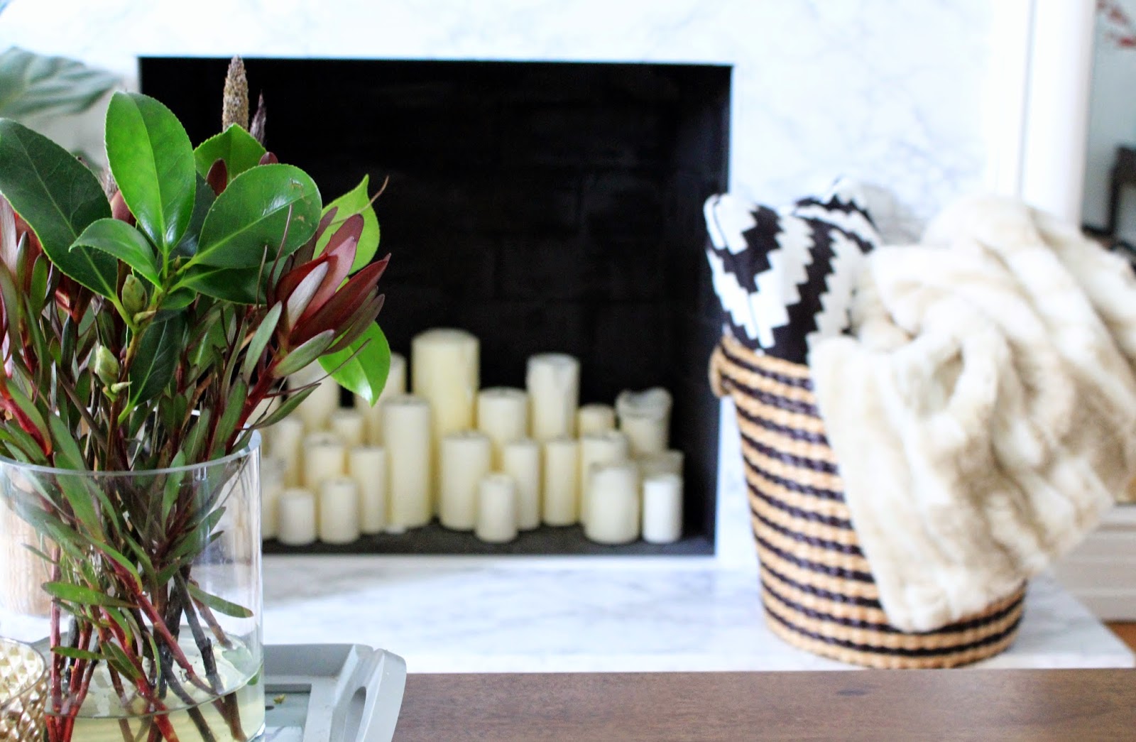 So candles are a good alternative – they are super cozy at night when they’re all lit, and in the day, they offer a pretty architectural element. As we burn them, I love the wax drips that come down the sides.