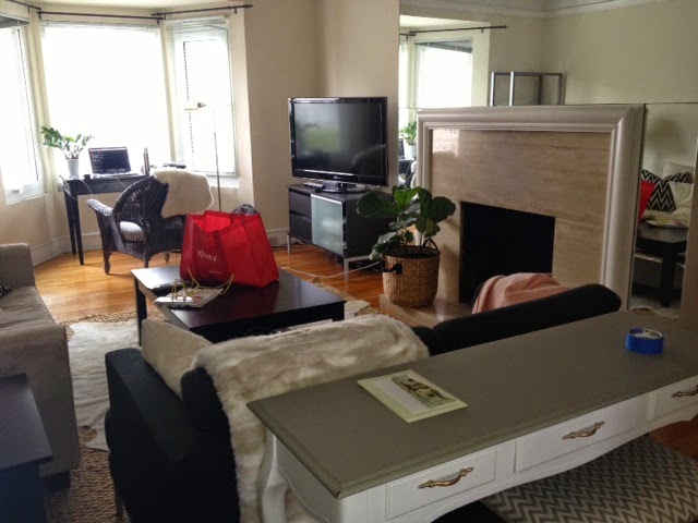 Another update? The old coffee table (which was part of a matching set) got sold to a new home on Craigslist, and we replaced it with this beauty.