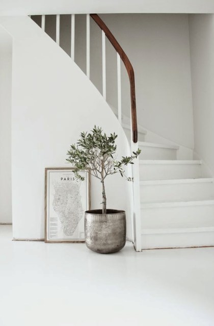 And here is the hallway, staring back at the front door from the other end. New mirror, new plant, and yes… a freshly painted door.